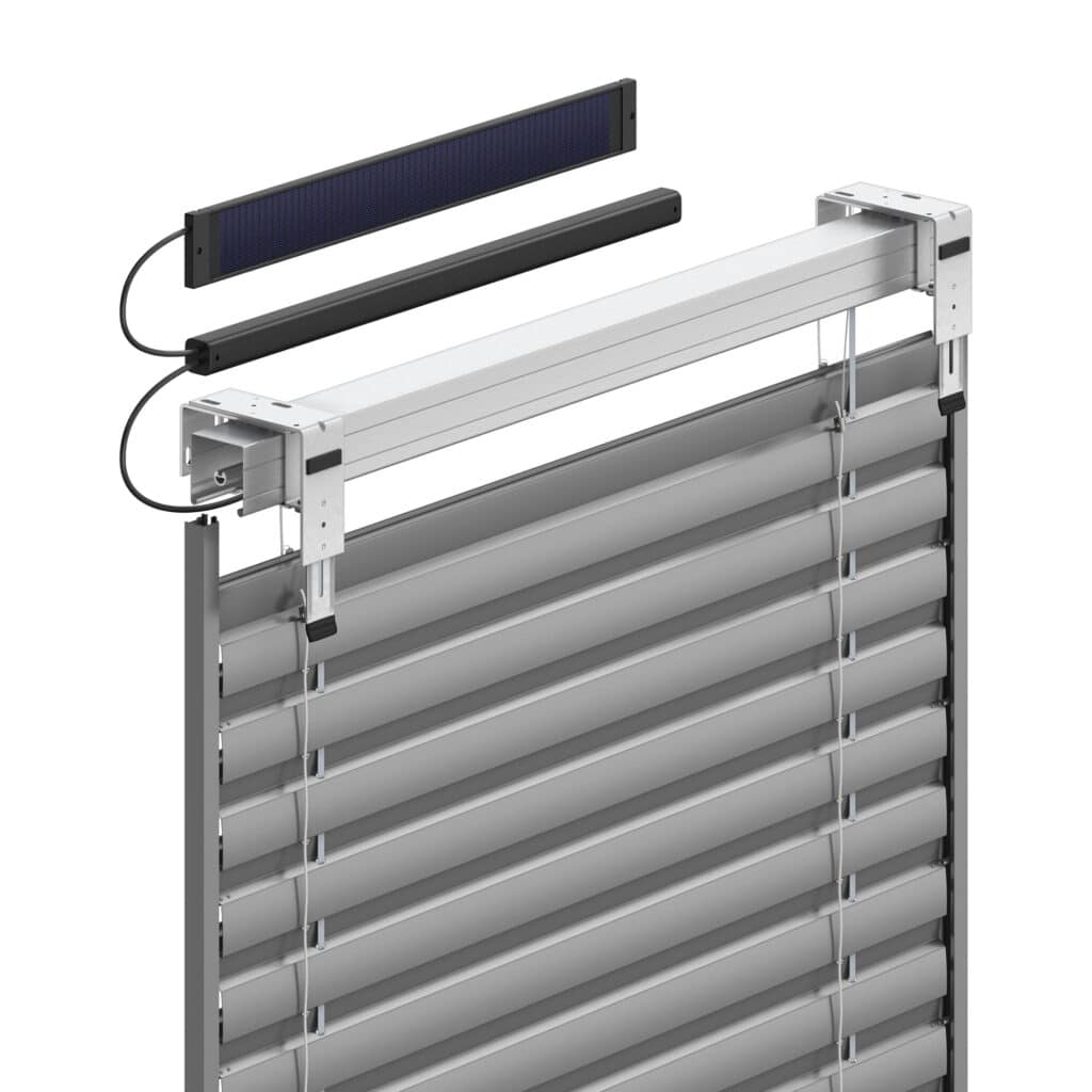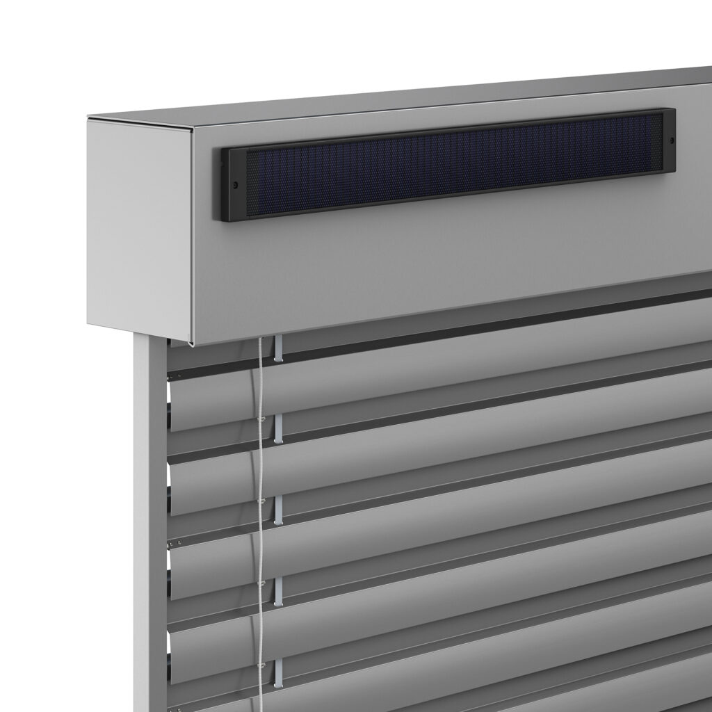 Vonkajšie žalúzie NEVA Solar využívajú solárny panel, ktorý sa dodáva samostatne a zvyčajne sa inštaluje na krycí plech. Solárny panel je možné umiestniť až 6 metrov od motora. Preto v prípade tienistých alebo severných fasád môžete panel nainštalovať na vhodnejšie slnečnejšie miesto.
