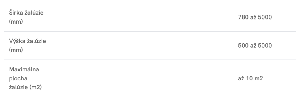 Technické parametre vonkajších žalúzií NEVA SOLAR