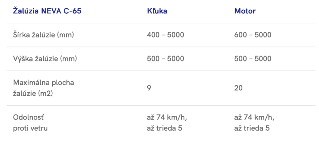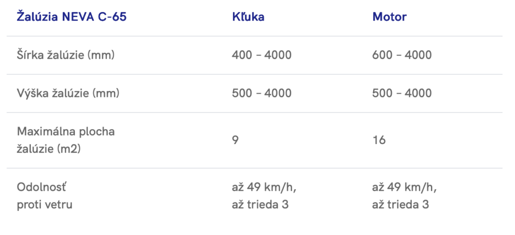 Vonkajšie žalúzie NEVA C-65