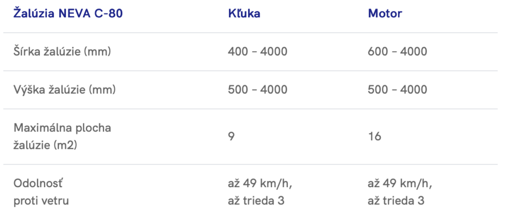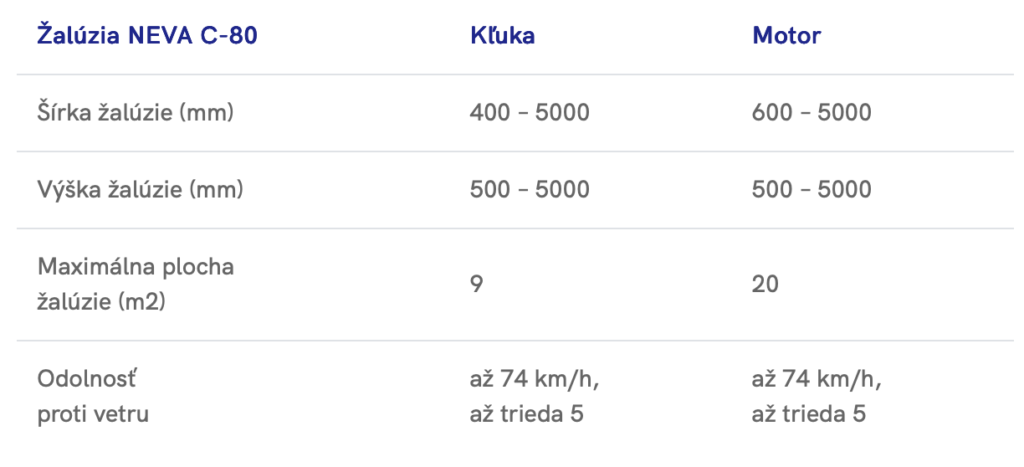 Vonkajšie žalúzie NEVA C-80